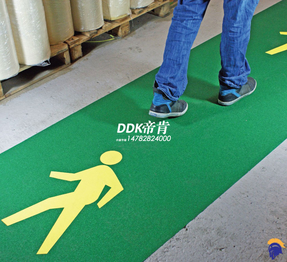 还在为仓库和车间地板通道划线而停产烦恼?传统油漆施工不仅耗时长、气味重,更需要等待漫长的干燥期。DDK帝肯的吸水吸尘警示人行道地毯为您提供专业性的地面解决方案 —— 铺装方便,即刻成型,真正做到即装即用! 这款产品专为工厂和商用环境设计,耐磨防滑,防水防尘,更能防护地面磨损,保持通道持久清洁。鲜明的色彩对比(如图片所示的绿色基底配黄色行人标识,也可定制颜色